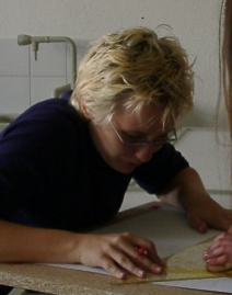 Claudia Röser und Robert Gehrke, in Hintergrund Stefanie Felscher ![]() konzentriert beim Bau der großen Kuppel   |